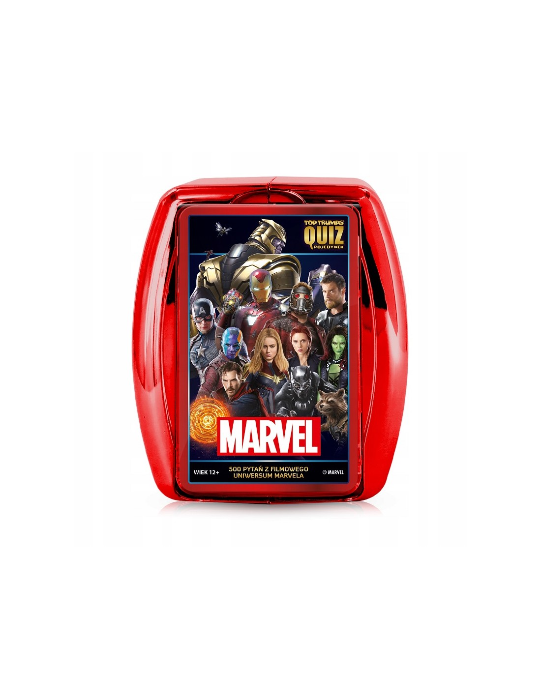 Wybierz się na kolejną wycieczkę na pokładzie lotniskowca Helicarrier i sprawdź swoją wiedzę na temat Avengers, Guardians of the Galaxy, S.H.I.E.L.D. i dziesiątek innych postaci, które składają się na fantastyczny świat Marvel Cinematic w tej specjalnej edycji Top Trumps Quiz – Marvel! Dzięki 500 pytaniom, które dotyczą niezapomnianych cytatów i momentów z jednej z najbardziej udanych serii filmowych w historii, nie będziesz potrzebować Kamienia Czasu, aby podsumować wydarzenia z Wojny Secesyjnej, Czarnej Pantery, Doktora Strange, Age of Ultron czy bijącego rekordy Endgame.