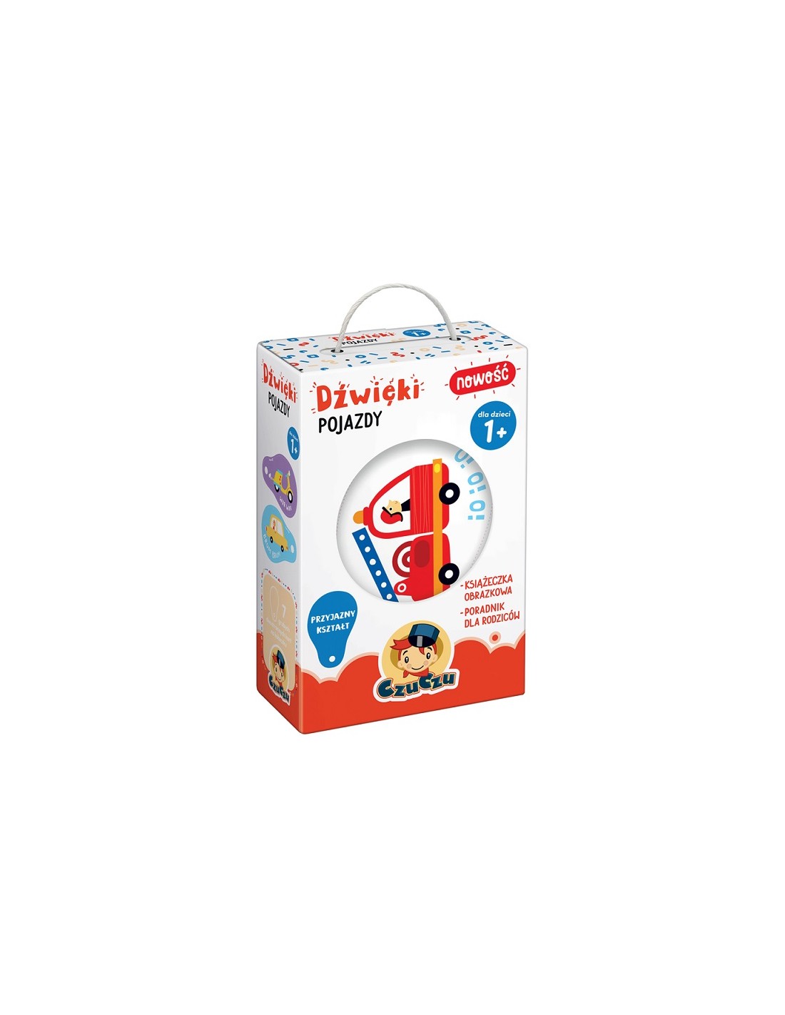 Maluch uczy się przez naśladowanie i z każdym dniem lepiej się komunikuje. Jest ciekawy świata i obserwuje to, co dzieje się dookoła niego. Oglądajcie książeczkę i nazywajcie pojazdy, ich elementy i kolory. Następnie powtarzajcie dźwięki i róbcie razem śmieszne miny. Wspólna lektura doskonale rozwija wzrok, słuch i słownictwo. Co więcej, to bardzo przyjemny sposób na budowanie wyjątkowej więzi z dzieckiem. Aby poszerzać waszą wiedzę o rozwoju dzieci, w zestawie znajdziecie poradnik z informacjami o rozwoju roczniaków oraz pomysłami na edukacyjne zabawy z książeczką.