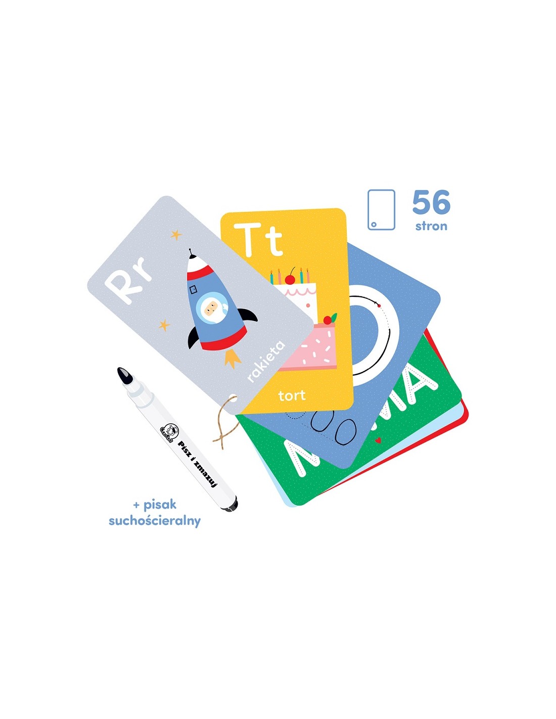 Wyjątkowa cecha: karty i pisak suchościeralny pozwalają na wielokrotne pisanie i zmazywanie.