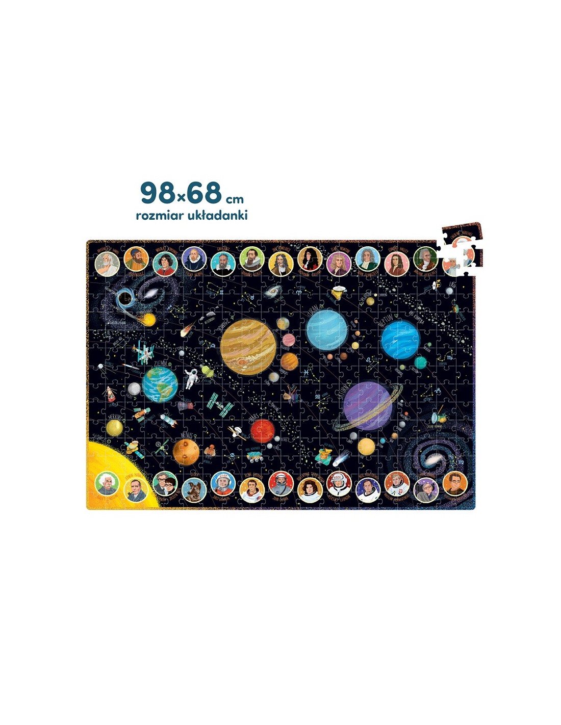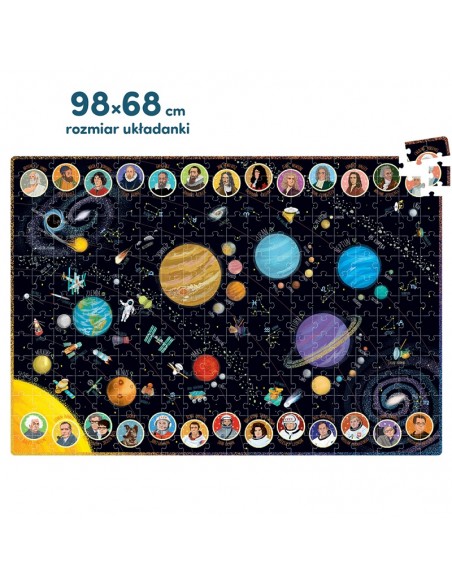 Wiemy, jak zainteresować uczniów i przekazywać nowe wiadomości w pełen humoru sposób. Pokazujemy, że nauka jest fajna, a wiedza daje moc! Ogromna, pełna szczegółów i pięknie zilustrowana układanka przedstawia najsłynniejsze ciała niebieskie, pojazdy kosmiczne, naukowców i odkrywców Układu Słonecznego. Układanie puzzli jest świetną zabawą, która jednocześnie pobudza wyobraźnię i pasję. Edukacyjny zestaw sprawdzi się jako prezent dla ciekawego (wszech)świata ucznia i doskonale sprawdzi się jako puzzle rodzinne.