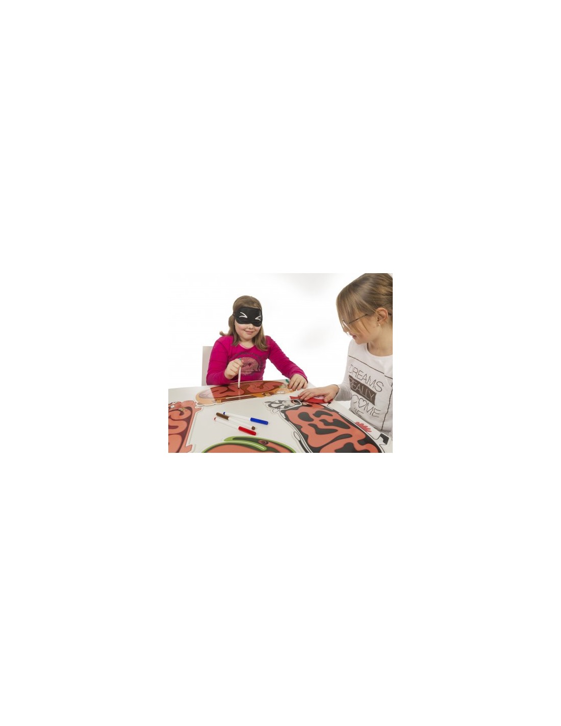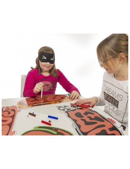 • W komplecie ścieralne tablice, opaska na oczy oraz poduszka do pierdzenia!