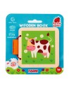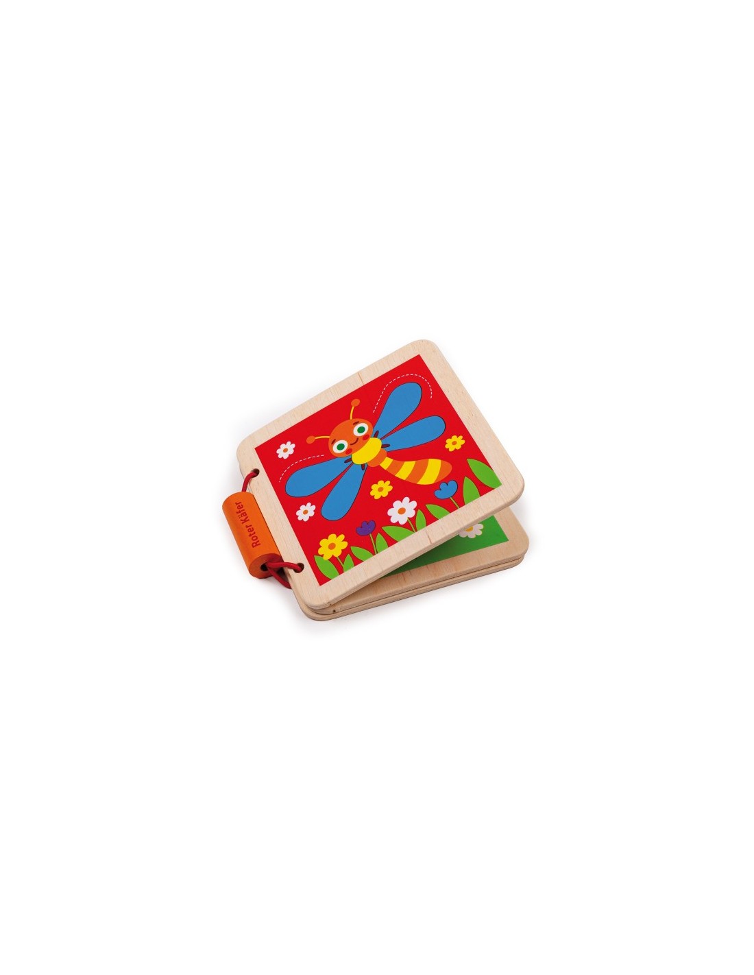Książka została wykonana z naturalnego drewna. Powierzchnia jest doskonale wypolerowana. Książeczka zapinana jest na gumkę z drewnianym elementem. Obrazki są wykonane bezpiecznymi farbami. Z troską o najmniejszych!