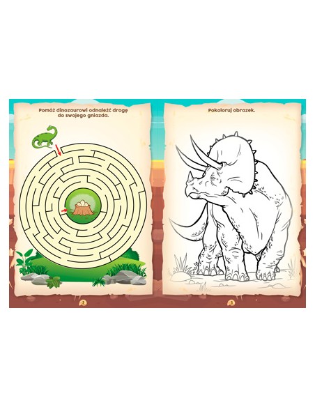 Czy wiesz, że miliony lat temu po naszej planecie hasały niesamowite zwierzęta – dinozaury? Dzięki tej książeczce możesz przenieść się w czasie i wkroczyć do prehistorycznej krainy pełnej zagadek. W towarzystwie wesołych dinozaurów spróbuj odnaleźć drogę w labiryncie, pomóż im dopasować właściwy cień i wyszukaj różnice między obrazkami. Mnóstwo fascynujących łamigłówek oraz moc udanej zabawy czeka tu na Ciebie!